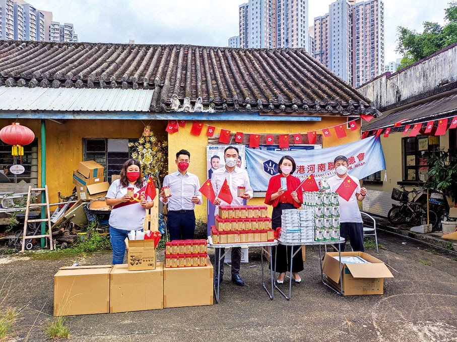 河南聯誼總會到烏溪沙村與村民共賀國慶 圖源:文汇報 香港河南聯誼總會常務副會長高波,會董兼副會長王衛東、祝慶台、張鵬、文藝,青年委員吳英豪等一行參與活動,到位於馬鞍山的烏溪沙村公所,為村民送去一批保健品和防疫物資,並將村公所裝扮一新,國旗區旗飄揚,讓村民共同感受國慶的喜悅。一些村民表示特別珍惜現在香港社會的和平安寧,紛紛主動索取國旗,並掛到家門口,表達作為中國人的自豪,同時也祝福祖國繁榮昌盛,香港安定繁榮。 河南聯誼總會代表接着到獨居長者家中探訪,為老人家送上節日慰問福袋。其中92歲的黃婆婆非常高興,她身體十分健朗,思維清晰。她感謝大家前來探望,並手持國旗表示自己是中國人,國慶節是國家的“大日子”,自己也非常開心。 高波表示,在國慶日來到新界鄉村,與當地村民共同慶祝非常有意義。正在貴州做公益的主席楊志紅、身處河南考察的會長湛大衛和副會長趙佳音也非常關注活動的開展情況,並表示河南聯誼總會的活動要繼續走進基層,推動同鄉社團深入社區服務市民。 香港河南聯誼總會為非營利性團體,於2021年10月正式註冊,旨在聯絡在港的河南鄉親共同搭建合作交流和愛國愛港平台,促進香港和河南兩地多方面的交流與合作,更好地服務香港的繁榮穩定,融入國家粵港澳大灣區發展戰略。 (完) 【編輯:王軼南】
