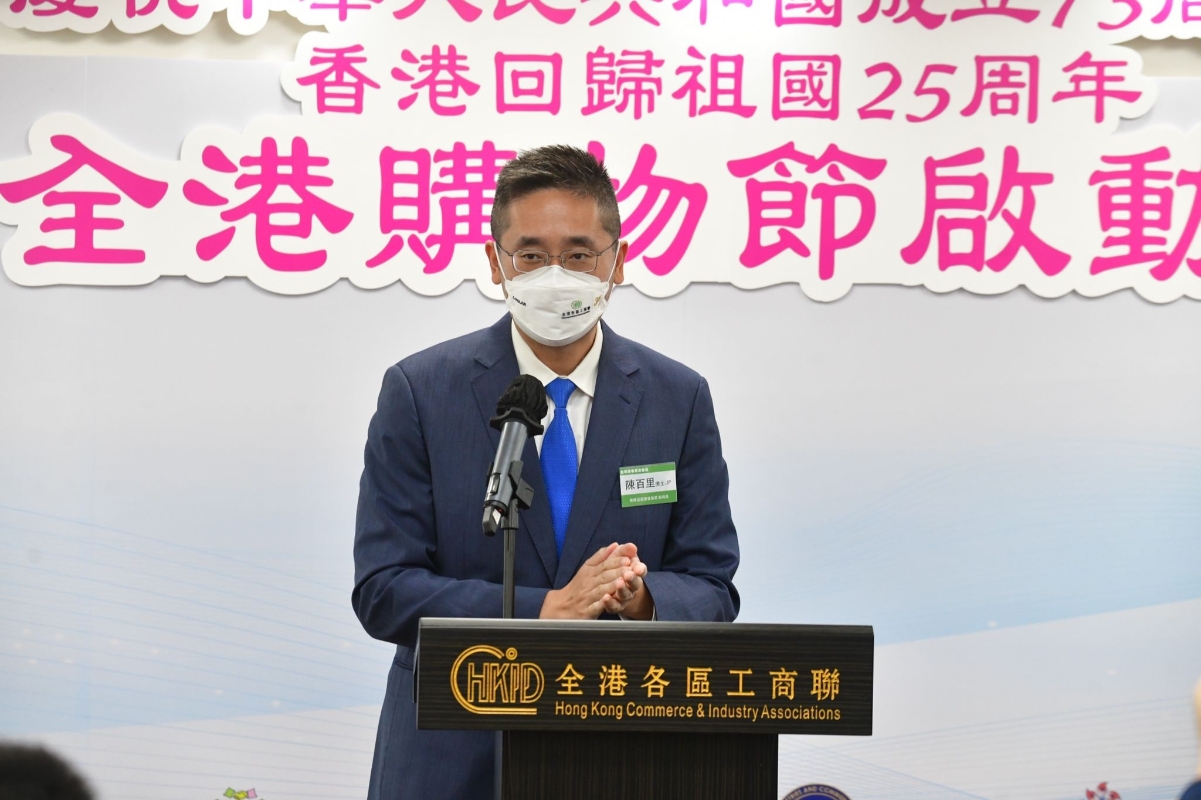 香港新聞網10月13日電 為慶祝中華人民共和國成立73周年暨香港回歸祖國25周年,全港各區工商聯12日舉辦“全港購物節”啟動禮,有逾5000間商戶加盟,向市民提供不同類型的優惠零售消費活動,並引入直播帶貨平台,助港商和香港品牌開拓大灣區市場。