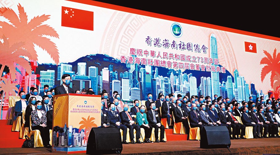 香港海南社團總會慶祝國慶73周年暨第四屆會董會就職典禮 圖源:香港文匯報 10月24日,海南省政府宣佈將會在香港發行離岸人民幣地方政府債券,並在香港聯合交易所上市,海南省政府是第一個內地省政府使用香港的融資平台和專業服務發債。李家超認為,充分展現香港是發行人民幣債務產品的首選平台,更有助促進人民幣國際化。 香港中聯辦副主任何靖、中央駐港國安公署副署長孫青野、外交部駐港公署副特派員方建明、立法會主席梁君彥、特區政府文化體育及旅遊局局長楊潤雄、民政及青年事務局局長麥美娟等亦出席並主禮。 李家超強調,國家主席習近平在今年七一重要講話中寄語特區政府要團結各方力量,共同維護和諧穩定。他相信海南社團總會將一如既往繼續支持特區政府依法施政,同時擔當瓊港兩地的溝通橋樑,促進經貿發展和文化交流,為國家和香港的未來而奮鬥。 連任海南社團總會會長的李文俊致辭時表示,中共二十大報告強調堅持“一國兩制”原則,是對香港再創輝煌的根本保障。 李文俊說,特首李家超發表任內首份施政報告,勇於作為,務實貼地,很好地貫徹落實了二十大報告以及習近平主席七一重要講話精神。總會將一如既往支持“一國兩制”行穩致遠,推動香港融入國家發展大局。 他介紹,總會未來將加強地區工作,現已於全港開設十個地區委員會辦事處,同時已成立海南港澳青年創新創業服務中心,主要為香港青年到海南創業、讀書、工作提供服務。(完) 【編輯:王軼南】