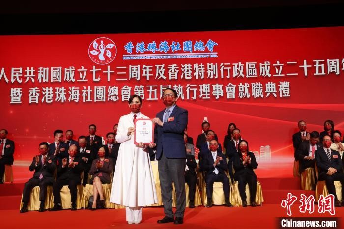 香港新聞網11月1日電 香港珠海社團總會11月1日舉行“慶祝中華人民共和國成立七十三周年及香港特別行政區成立二十五周年暨香港珠海社團總會第五屆執行理事會就職典禮”,港區全國人大代表鄺美雲連任會長。政務司司長陳國基出席主禮。鄺美雲表示,將帶領該會第五屆執行理事會一起為促進珠海發展建設及珠港兩地合作交流、保持香港社會長期繁榮穩定、“一國兩制”行穩致遠貢獻力量。