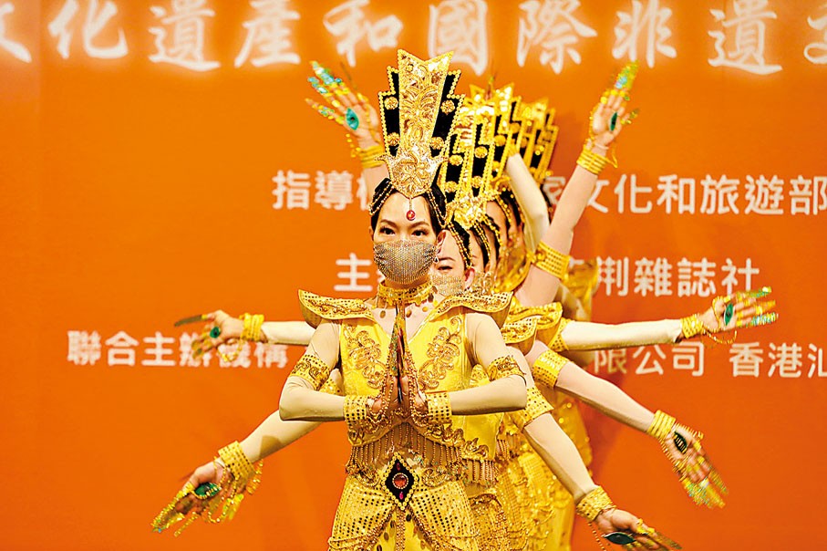 開幕式上呈現敦煌舞《夢回敦煌》非遺項目表演。 圖源:香港文匯報 昨日開幕式亦獻上了舞獅表演,以及福建南音《滿空飛》、敦煌舞《夢回敦煌》和粵劇摺子戲《胡地蠻歌》3個非遺項目表演。 特區政府政務司司長陳國基昨日在活動開幕式上致辭時表示,特區政府會充分發揮國家“十四五”規劃賦予香港作為中外文化藝術交流中心的定位,說好香港故事,加強在內地和海外推廣多元非遺項目,深化與世界各地民心相通。 紫荊雜誌社社長楊勇致辭時指,香港是一座非物質文化遺產的富礦。目前,香港有十餘個非遺項目被列入我們國家的國家級非遺名錄,為中華文化的傳承作出積極貢獻。