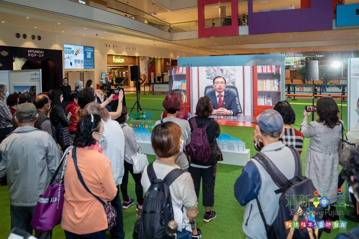 由福建省文旅廳主辦的“清新福建”香港社區行活動24日在港開幕。 圖源:香港商報 福建省文化和旅遊廳副廳長肖長培在視頻致辭中說,帶着黨的二十大勝利召開的濃濃喜氣,很高興有福氣、有顏值、有文化、有品位、有未來的“清新福建”再次走進香港社區,希望香港各界同胞多來福建走一走、各位鄉親常回家看看,在福建,可以喝閩茶、看土樓、泡溫泉、嘗閩菜、聽南音、品故事,走進清新福建,開啟幸運之旅。