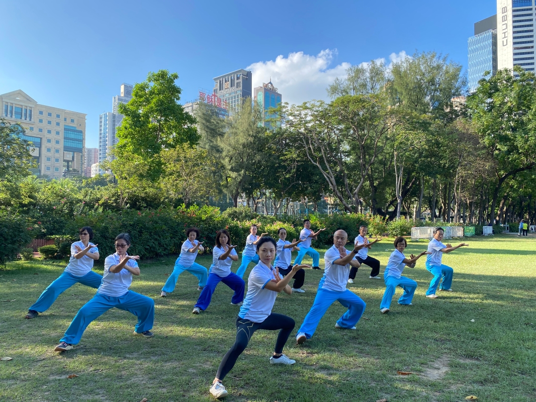 徐鈿英師傅在維園教授學生,多年來的言傳身教,默默耕耘,令其不少學生在各項武術比賽多次獲獎。 【編輯:洪少葵】
