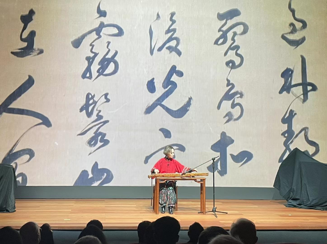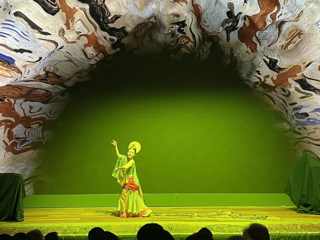 古琴演奏家余美麗現場演奏。 圖源:香港商報 香港舞蹈總會主辦的大型舞蹈劇《緣起敦煌》精華片段及著名舞蹈家陳磊創作全新獨舞《聞法飛天》,由香港青年藝人蔡頌思進行全球首演。蔡頌思表示,通過該舞對敦煌文化與歷史有了深刻認識,希望將敦煌舞“活”起來,展現其中文化內涵。