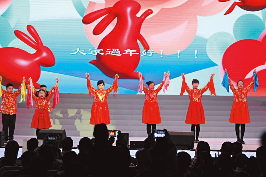 來自不同社區的小朋友以快板演出向公眾拜早年。 圖源:香港文匯報 李家超表示,“中國春節文化展覽每年在全球各地舉行,以不同藝術形式立體地呈現中國傳統春節文化,不但凝聚海內外華人,更向世界展示中國文化獨有魅力。癸卯兔年,『歡樂春節』展覽第一次來到香港展出,以『兔躍青山,萬物生輝』為主題,在港九新界呈現不同的新春場景,與市民共慶新禧,別具意義。”