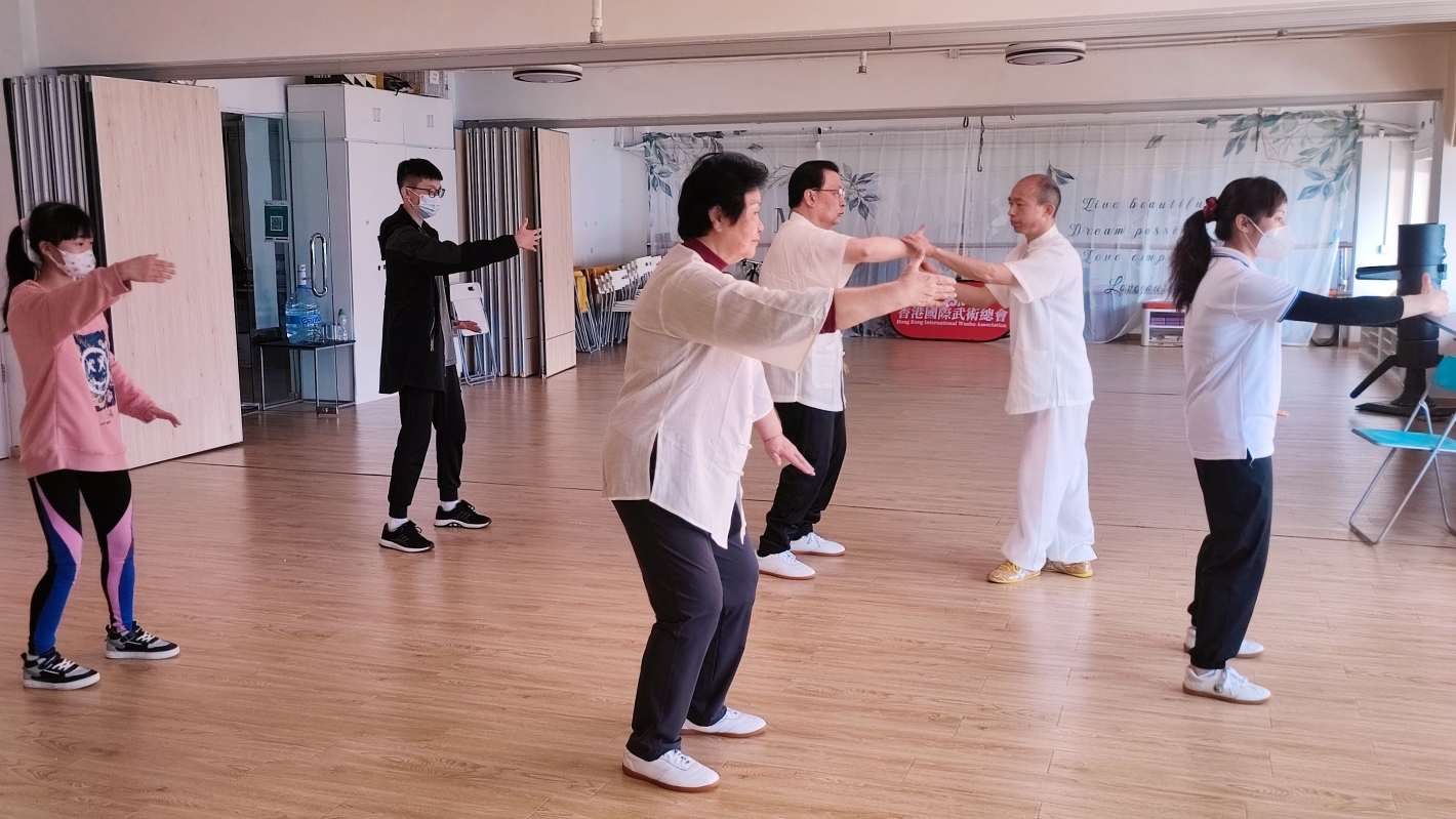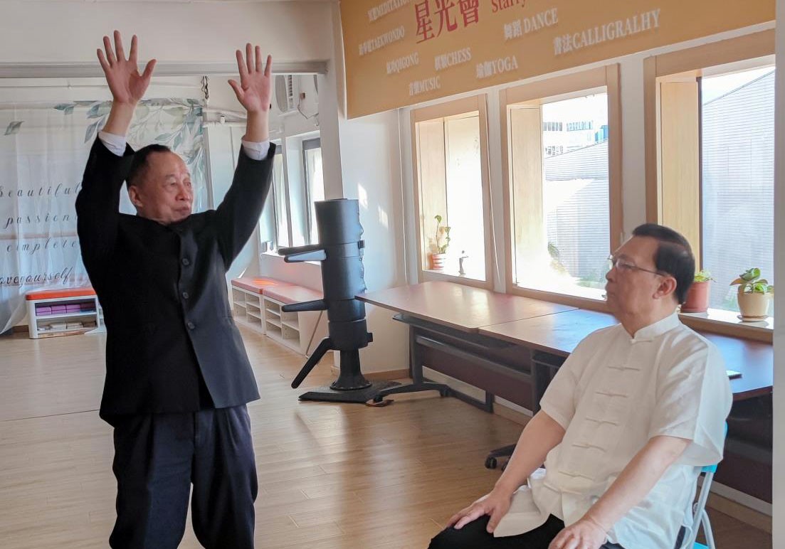 譚耀宗攜夫人學習傳統太極拳。
