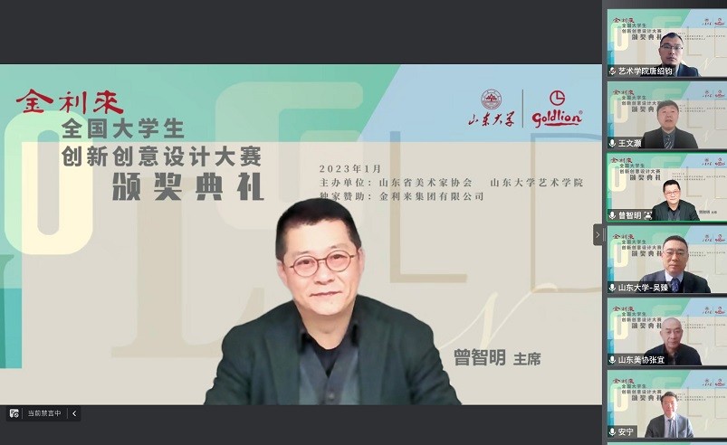 香港新聞網1月31日電 首屆“金利來”全國大學生創新創意設計大賽頒獎典禮早前通過騰訊會議線上方式舉行。山東工藝美術學院、山東大學藝術學院教師代表、學生代表以及大賽服裝類和視覺類獲獎選手出席此次頒獎典禮。