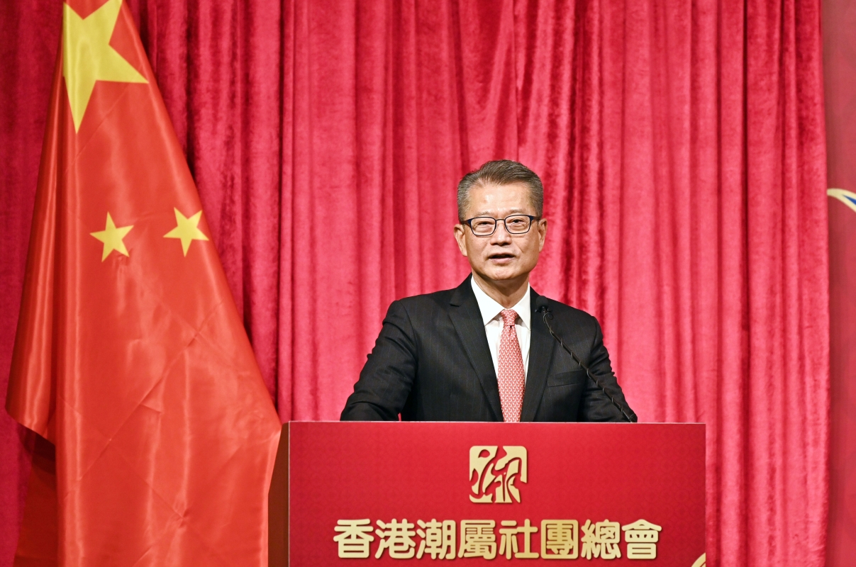 香港財長陳茂波在香港潮屬社團總會新春團拜上致辭。 香港中通社圖片 陳茂波向各位潮籍鄉親送上祝福。他致辭道,潮總自成立以來秉持“凝聚力量,攜手並進”的精神,凝聚鄉親、服務香港、貢獻國家,有目共睹。渡過艱難的虎年,今年的經濟一定比去年好,他說,除了兩地恢復通關,跟國際社會恢復便捷往還外,新一屆政府採取“有為政府”與“高效市場”更好結合的管治思維。行政長官在去年10月發表的施政報告裏,提到要積極“搶企業”、“搶人才”,此外,香港還要搶生意。特區政府在“未來基金”裏亦撥出300億元,助力引進具策略性的重點企業,讓香港的持續發展有更強動能、發展力量更大。