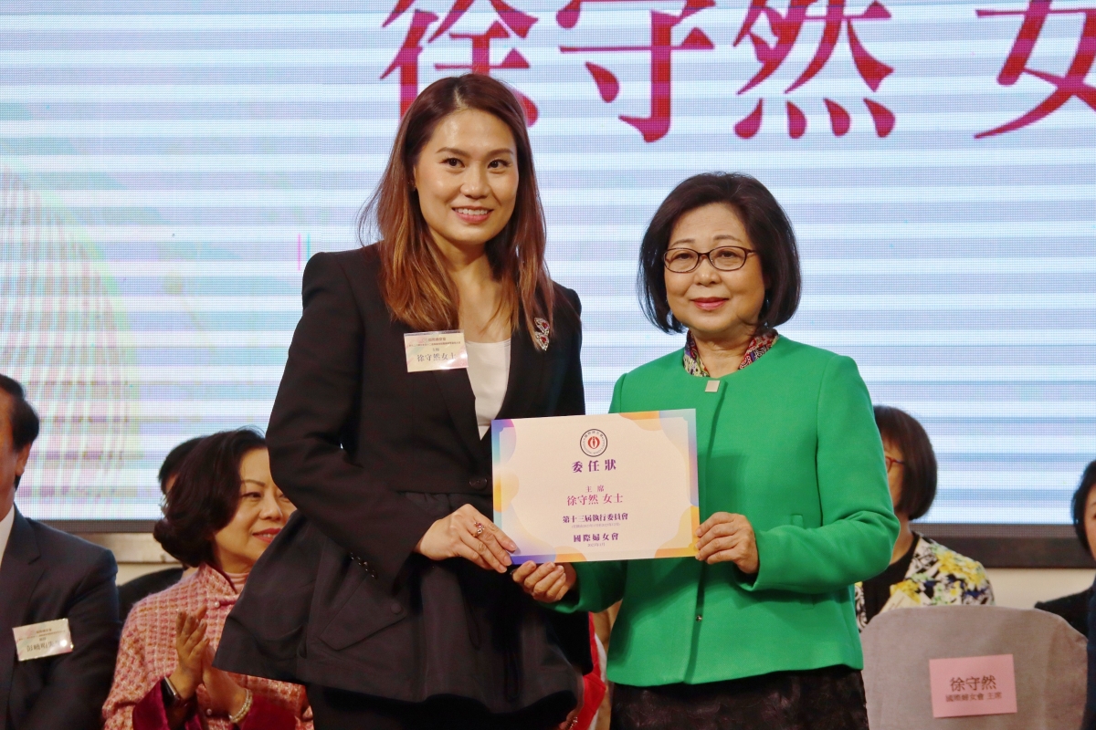 李林麗嬋(右)向徐守然頒發主席委任狀。圖源:香港商報 國際婦女會第十三屆主席徐守然致辭表示,肩負會長、各位執委、委員和會員的信任和重託,擔當國際婦女會第十三屆主席。該會多年來植根社群、共同關注及服務長者,多年的服務更獲得政府的認可;自1996年成立國際婦女會老人中心以來,該中心又獲社署批准升格為長者鄰舍中心,使得服務更趨專業及多元化,深受區內長者歡迎及支持。 她亦透露,隨着兩地通關和一切復常,今年將會多組織一些前往大灣區城市考察實習的活動。為了加強跨代溝通和了解,該會也將舉辦更多長者與青年共同參與的活動,促進社會和諧交融。
