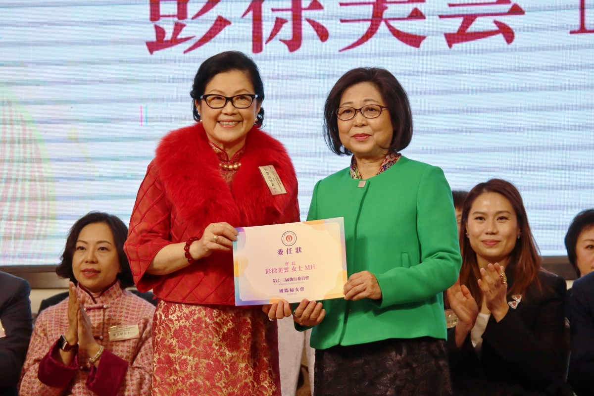 李林麗嬋(左)向彭徐美雲頒發會長委任狀。圖源:香港商報 該會會長彭徐美雲致辭道,國際婦女會以服務社會為宗旨,在關心婦女及長者、防疫抗疫等方面均作出積極貢獻,包括疫情期間搜羅防疫物資、鼓勵長者接種疫苗、舉辦線上Zoom教學班以提升長者運用智能手機的能力。香港已全面恢復通關,憑藉背靠祖國、面向世界的優勢,相信大家的生活會越來越好。