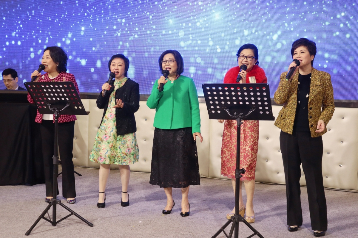 由盧黎碧煥、白傅燕紅、李林麗嬋、彭徐美雲、單黃嘉敏組成的Singing Girls為老友記獻上勁歌金曲。圖源:香港商報 代表和諧與美的女性亦善歌善舞,諸位嘉賓及會內姐妹紛紛上台一展歌喉。由盧黎碧煥、白傅燕紅、李林麗嬋、彭徐美雲、單黃嘉敏組成的Singing Girls組合不僅粵韻小調唱得拿手,流行粵曲亦唱得大家陶醉,贏得掌聲陣陣。 (完) 【編輯:王軼南】