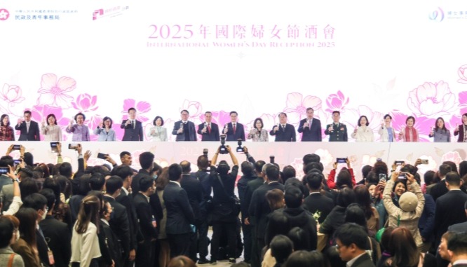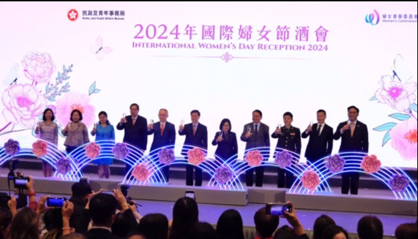 香港新聞網3月7日電 國際婦女會日前於百樂門國際宴會廳舉行“國際婦女會慶祝三八婦女節、第十三屆執委會就職典禮暨敬老大會”,邀得行政長官夫人李林麗嬋、民政及青年事務局局長麥美娟、中聯辦協調部副部長徐小林、社會福利署署長李佩詩出席主禮。當天近600位嘉賓及長者出席,亦設有抽獎、敬老派利是、勁歌金曲環節,場面熱鬧,一片喜慶。