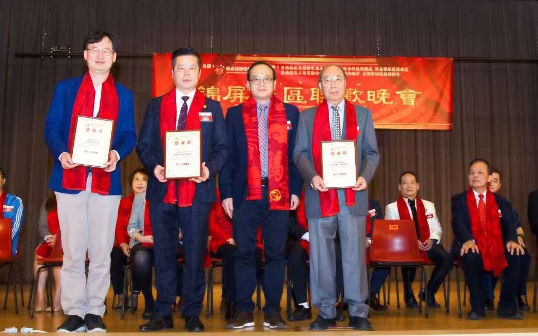 歌藝文藝晚會上,中聯辦港島工作部處長任海天,香港島各界聯合會北鰂地委會主席李莉,香港福建社團聯會港島東分會執行會長柯文華,民建聯東區支部主席洪連杉為演出團體頒發感謝狀。錦屏街坊協會主席蔡安娜,會長丁錦聰向主禮嘉賓頒發感謝狀。