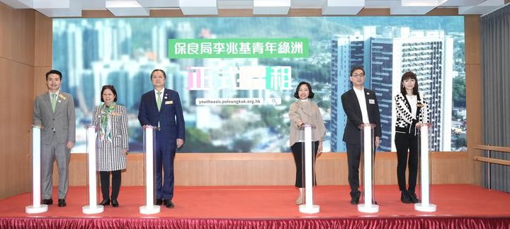 民政及青年事務局局長麥美娟(右三)、保良局主席陳正欣(左三)、恒基兆業地產執行董事黃浩明(右二)為保良局李兆基青年綠洲主持招租啟動儀式。圖源:華人頭條 保良局李兆基青年綠洲項目為特區政府“青年宿舍計劃”中最具規模的一項,共提供1,680個宿位,讓18至30歲在職青年以半價市值租金租住最多5年。青年綠洲共有816間單人房及432間雙人房,租金範圍為$2,950至$4,200,按房型、房間呎數、樓層高低、房間方向等釐訂。有興趣申請青年綠洲宿位者,可經青年綠洲網頁正式申請入住。
