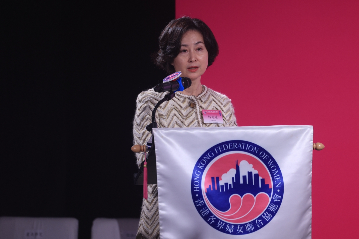 圖為香港婦協主席何超瓊致歡迎辭。( 許其皓攝) 香港中通社圖片 何超瓊致辭時指出,特區政府一直對婦女發展高度重視,她鼓勵廣大婦女除了要帶頭弘揚傳統美德,涵養良好家風家教外,更要“有擔當”,提高自己的站位。登高望遠,認清方向,發揮好“她力量”,婦女組織更要做實事,肩負起團結及帶領各界婦女的重任。在國家高質量發展的新征程中,婦女要綻放芳華,為國家第二個百年奮鬥目標,貢獻“她力量”。