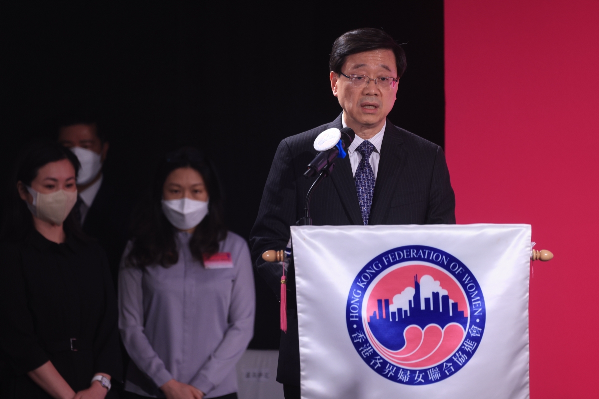 行政長官李家超致辭。香港中通社圖片 李家超致辭時表示,二十大報告提出,堅持男女平等基本國策,保障婦女兒童合法權益。今年是全面貫徹落實二十大精神的開局之年,香港會全力配合國家戰略,在各方面注重婦女發展。未來特區政府會與香港不同的婦女團體繼續緊密合作,和民間的女性力量一起推動婦女權益,相信香港的婦女將在婦女事業發展上書寫一個又一個新篇章。