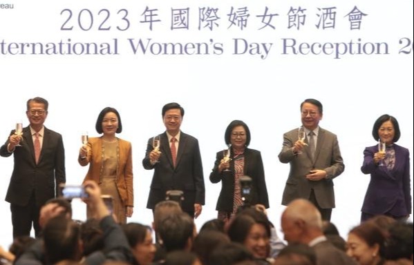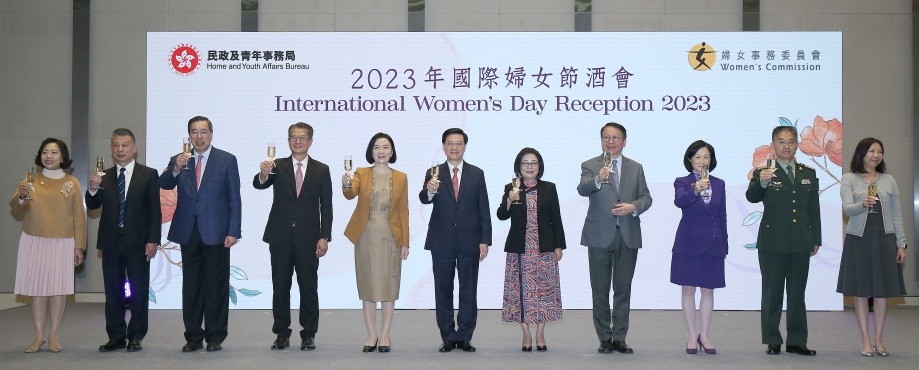 香港中通社3月20日電(記者 張明臻)香港各界婦女聯合協進會20日舉辦“2023香港各界慶祝國際婦女節酒會”,香港特區行政長官李家超伉儷、前任行政長官林鄭月娥、香港婦協主席何超瓊等出席。