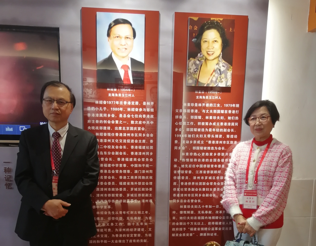 愛國華僑領袖林開德的兒子林紹奮(左)和女兒林素珍 【編輯:洪少葵】