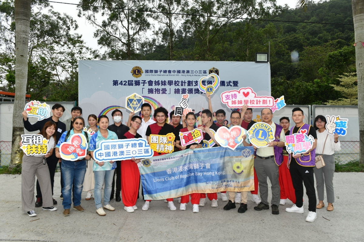 香港新聞網5月17日電 香港姊妹學校支票頒贈暨“擁抱愛”繪畫頒獎禮日前在沙頭角農莊舉行。總監冼健岷獅兄、教育局副秘書長蘇婉儀、前國際理事文錦歡獅姐,聯合主席江瑩瑩獅姐、羅文佑獅兄及4位聯合副主席,特殊學校議會主席梁校長等嘉賓於百忙之中出席活動,與區職員、會長、獅友、校長、老師、社工、家長及同學仔聚首一堂,參加人數超過400人,十分熱鬧。