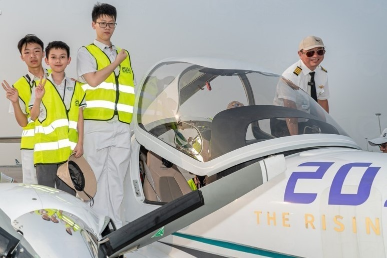 慕光書院學生登上真實飛機體驗。(學校提供圖片) 慕光英文書院校長張永豐指,待同學對航空知識及模擬駕駛成熟,慕光將挑選精英學員,參加國內航空研學團,前往國內體驗專業機師進行訓練時所用的飛行模擬器,到珠海體驗真實飛行培訓,也會到四川成都廣漢中國民用航空飛行學院進行實地考察。 慕光書院亦計劃於新學年起,帶領學生到大灣區珠海進行實地研習,並透過珠海市各專業航空單位,優化書院的航空課程並提供意見和技術協助,最終讓學生更立體及真實地接觸專業級的中國航天機構。(完) 【編輯:王軼南】