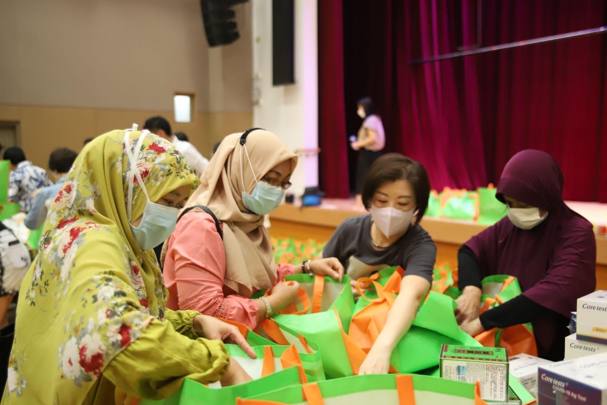 灣仔各界協會會長莊創業(左一)、灣仔民政事務專員張雁伶(左三)、中聯辦港島工作部副部長王卉(右二)與灣仔區內鍚克教及伊斯蘭教代表出席啟動禮 6月8日,灣仔民政事務專員張雁伶、灣仔各界協會會長莊創業,副主席孫日孝、周錦偉、閰偉寧、劉珮珊、溫俊文及灣仔三個分區委員會義工,在禮頓山社區會堂包裝福袋,鍚克教及伊斯蘭教亦有派出義工包裝。各人眾志成城,在短短個半小時內己完成1000份福袋,現場福袋宛如花海,不論其色彩繽紛的外表還是內在的暖情,均讓人感到賞心悅目。