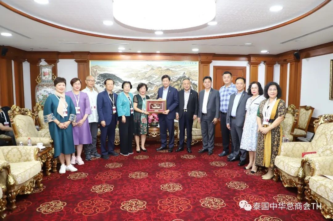 賓主雙方互贈紀念品。圖源:泰國中華總商會 林雪芸會長對林主席及中總領導的熱情接待表示感謝,隨後介紹了香港潮人文藝協會的會務情況。她表示香港潮人文藝協會成立於2019年,是香港潮屬社團總會屬會之一,也是廣東潮劇院第一所合作的海外潮劇傳承中心,協會在香港透過吸收年輕潮州人後裔,堅持傳承及保育潮汕人傳統文化,同時,也透過外訪跟世界各地的潮屬鄉會建立友好關係,聯繫鄉情。林雪芸會長自幼就是一個潮劇藝術愛好者,相信只有音樂及戲劇是無疆界的,希望為傳承潮劇盡份心力,用潮劇潮音把世界各地鄉親拉近距離。 最後,在林楚欽主席等的陪同下,林雪雲會長一行參觀了泰國中華總商會。泰國中華總商會副主席李桂雄,秘書長助理林兆祥,戰略創新部主任李嘉淳,文化部副主任陳賢得,會董黃玩君,總幹事魏東莉等也參加了交流。 香港潮人文藝協會代表團成員有:會長林雪芸,榮譽會長蘇振聲、蕭七妹,副會長陳炎豹、張小雪,藝術總監陳暘,副秘書長曾麗珠、林樹光,會董林唯文,會員高丹青、陳彥華、邱漢存、洪文光、張曉沖、李揮鋤、楊玉湘、歐陽夢冬。(完) 【編輯:王軼南】
