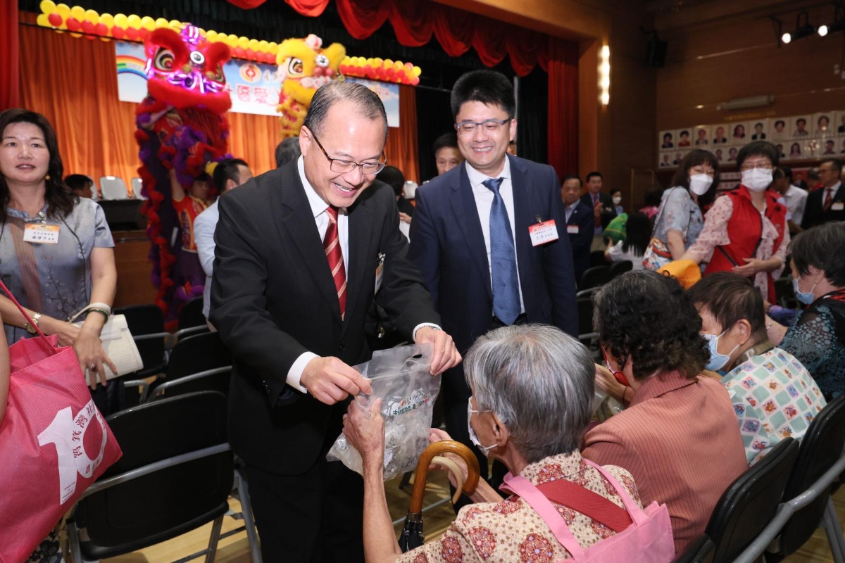 專責會長李應生向長者派爱心粽。圖源:香港商報 專責會長李應生講到,公益及地區事務兩個委員會將舉辦包括送贈愛心粽慶回歸、探訪獨居長者及單親家庭、賀回歸中秋聯歡茶聚等活動。此外,聯絡處也將在9月份籌辦粵港青少年交流團,組織中學生前往大灣區參觀交流,也將舉辦中學生生涯規劃分享會,邀請行業精英分享資訊。 隨後,愛心大使與該會首長共同派粽,今次派發的粽袋中有鹹甜不同口味,許多長者都表示,中總溫暖社區活動給大家帶來歡樂,還有醒獅隊表演炒熱氣氛,給生活添上溫暖和歡樂。 出席活動的嘉賓還有中聯辦新界工作部處長廖銘華,中西區民政事務專員梁子琪,灣仔區民政事務專員張雁伶,油尖旺民政事務專員余健強,深水埗民政事務專員黃昕然,觀塘區署理民政事務專員林福亮等。(完) 【編輯:王軼南】