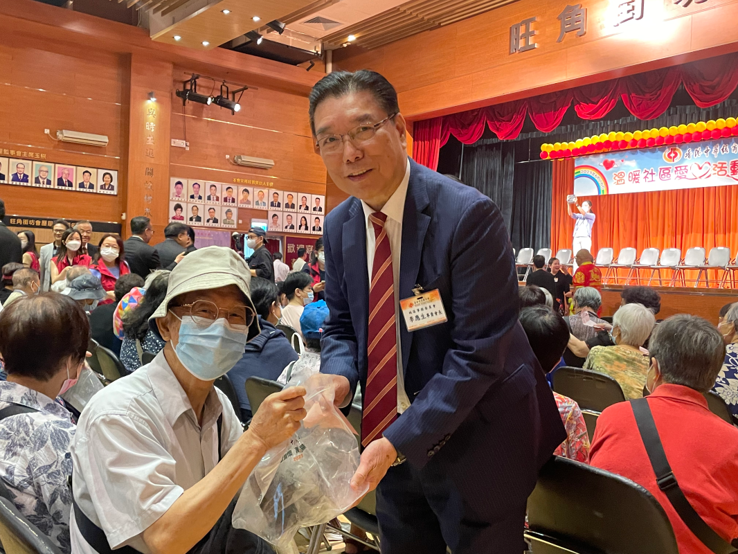 蔡冠深會長向長者派發愛心粽。圖源:香港商報 蔡冠深講到,中總地區事務委員會與公益事務委員會合辦“溫暖社區愛心活動系列”啟動禮,將隨即開展中總獻關懷,萬粽顯愛心活動,向旺角區坊眾派發愛心粽。該會將繼續投放資源推動社會公益事務,加強與各區聯絡處、民政事務處、地區工商團體和社團的聯繫,為長者、青少年、基層家庭和少數族裔等弱勢群體奉獻愛心,為構建和諧友愛社區作出努力。