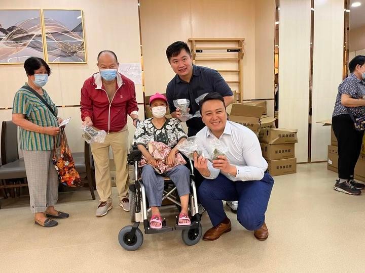 義工為長者派愛心物資。圖源:香港湖南青年會 在景林商場2樓派發完端午福袋後,青年義工和社區幹事又把打包好的粽子福袋挨家挨戶送到有需要的居民家中。有些腿腳不便的老人在收到粽子後非常開心,表示足不出戶就能吃上愛心粽子,心裏覺得十分溫暖。 香港立法會議員李世榮,民政事務署西貢民政事務處高級聯絡主任吳偉明,民建聯西貢將軍澳支部副主席、招商貨櫃商務部總監、香港工商總會青年網絡關愛部部長、家庭健康促進會副主席温啟明,香港工商總會青年網絡副主席余靖浵、李新、莊毅穎,家庭健康促進會主席陳淑儀,香港湖南聯誼總會副會長賀艷臣也參與了本次活動。 (完) 【編輯:王軼南】