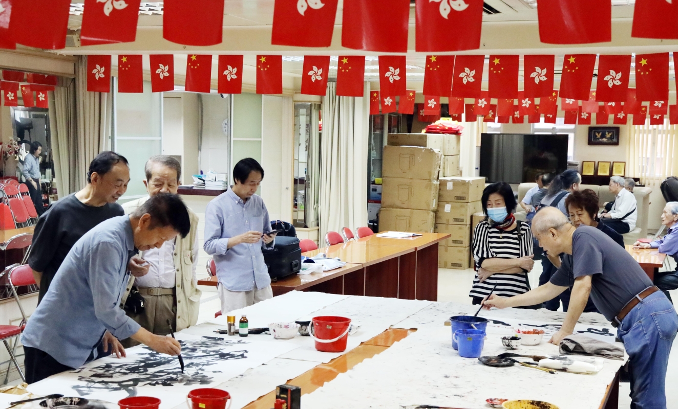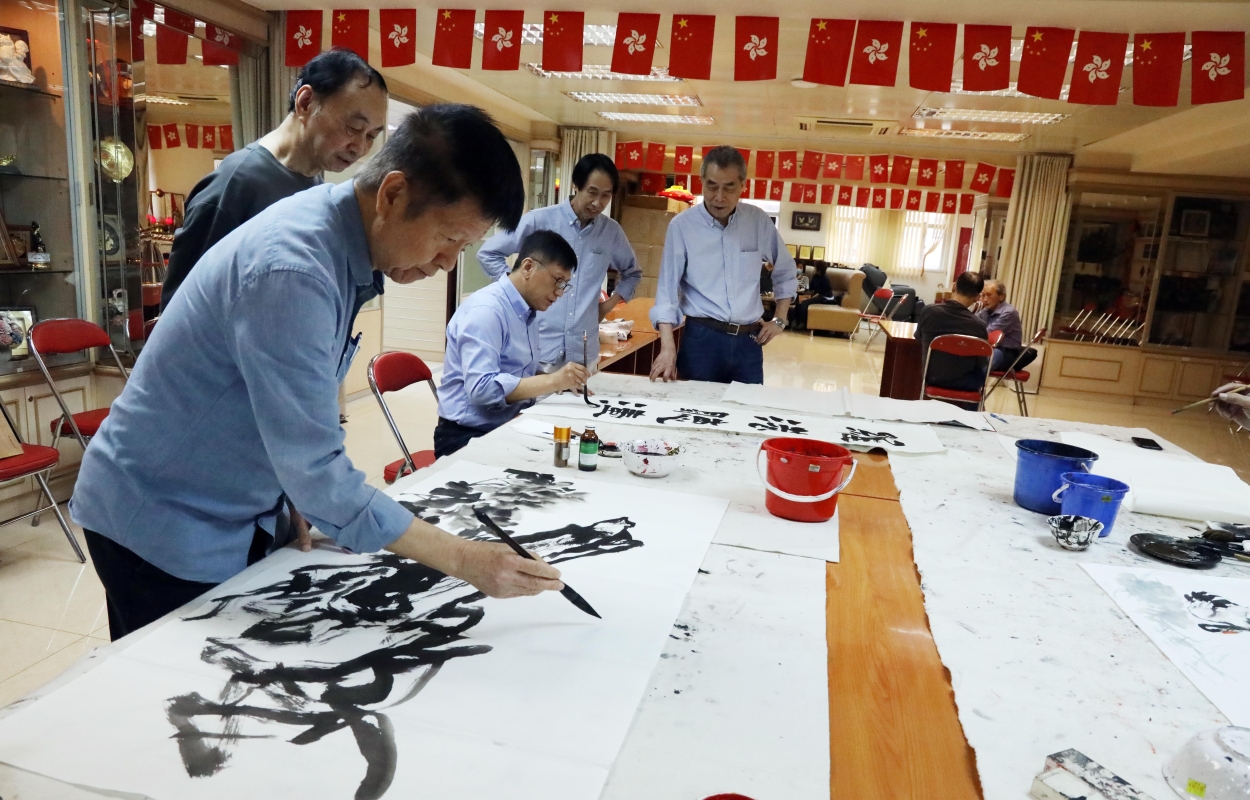 香港新聞網10月28日電(記者洪少葵)香港福建書畫研究會10月28日在香港福建同鄉會舉行書畫雅集,做為福建籍書畫家鄉親於每月最後一周日定期舉辦的集會。一眾閩籍書畫家李大洲、陳方遠、王子天、葉金城、施育煌、楊煌、廖竟揚等潑墨揮毫,一派歡樂喜慶。 香港福建書畫研究會成立於1988年,30多年來在福建書畫研究會會長施子清、副會長李大洲等名家領導下,經常舉辦交流展覽,為書畫愛好者提供很好平台,受到業內的好評和讚賞。研究會已吸納了逾百位會員,每兩年舉辦一次書畫大展,當中不乏國家級丹青好手。三十多載風雨兼程,在港傳播優秀傳統文化,以藝會友發展友誼,構建和諧共融社會。據悉,該會每月舉辦的筆友雅集,致力弘揚中華傳統文化、積極推動了香港與內地書畫藝術研究、交流、合作。