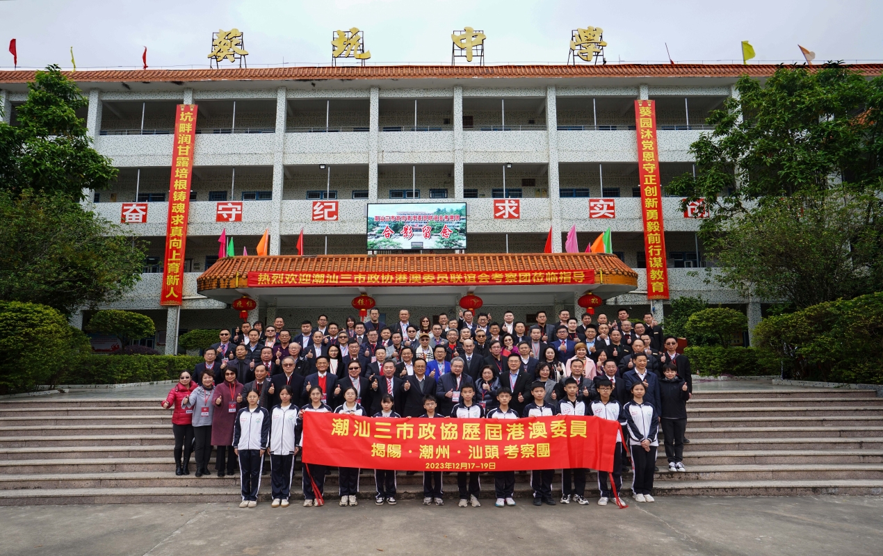 考察團由揭陽市政協常委、香港聯絡組組長張仲哲任團長;潮汕三市政協歷屆香港委員聯誼會前召集人陳幼南任榮譽團長;副團長為潮州市政協常委、香港聯絡組組長莊學海,汕頭市政協常委、香港聯絡組組長陳志明,潮汕三市政協澳門委員聯誼會召集人陳維熾以及潮州市政協常委陳旭偉;秘書長為潮汕三市政協歷屆香港委員聯誼會秘書長林楓林。考察團成員尚有廣東省政協委員、揭陽市政協澳門聯絡組組長許樂敏,政協第十二屆廣東省委員會常委吳哲歆,潮汕三市政協歷屆香港委員聯誼會前司庫林宣亮;揭陽市政協常委王晨峰、林少華、彭少衍;潮州市政協常委藍國浩、沈振虎、王建瑜、謝喜武等。 3天行程中,考察團第一站就深入普寧市高埔鎮開展捐資助學活動,向高埔鎮葵坑初級中學捐贈50萬元用於教學設施購置,幫助學校改善教學教育環境,並同學校全體師生共同舉行“揭有暖陽—我為家鄉種棵樹”植樹活動。考察團先後考察了大南海石化工業區、揭陽市丁日昌紀念館、揭陽技師學院等地,並與三市市委、市政府、市政協主要官員及相關部門座談交流。大家歡聚一堂,暢敘鄉情,共同為推動潮汕三市振興發展出謀獻策。