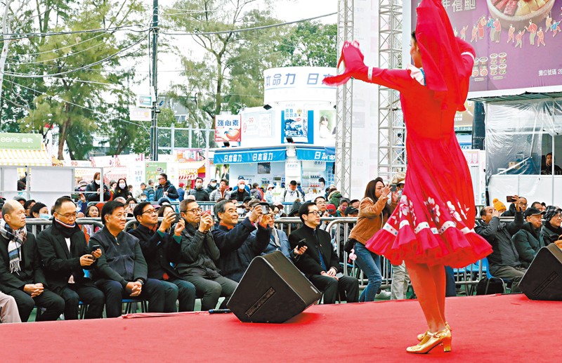 香港中通社12月24日電 全國政協副主席梁振英23日身穿唐裝棉襖,在香港工展會欣賞新疆歌舞。他在接受媒體採訪時說,這次有新疆的藝術團和優質產品來到香港工展會,相信推廣效果會好。工展會是香港一個老牌的展覽會,入場人次都過100萬,令這些產品可以面向更大的群體。