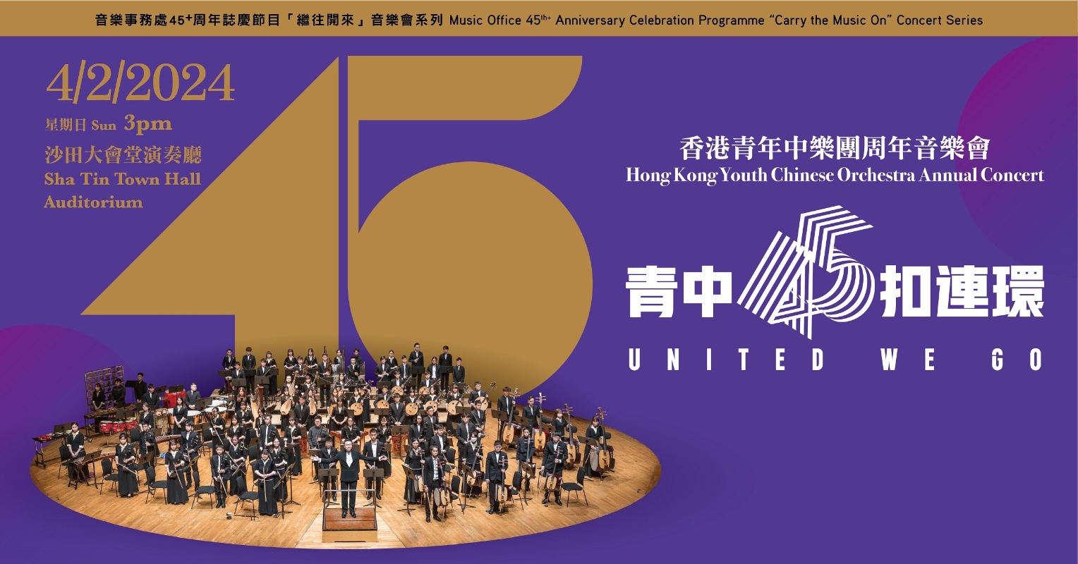 香港新聞網1月4日電 香港青年中樂團將於2月4日下午3時在沙田大會堂演奏廳舉行周年音樂會“青中45扣連環”,為觀眾獻上多首風格多元的中樂名曲。音樂會是慶祝音樂事務處成立超過45年“‘繼往開來’音樂會系列”誌慶節目之一。