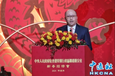 香港中聯辦舉行龍年新春招待會 鄭雁雄送上“龍”祝福香港中通社1月30日電(記者 徐嘉儀)甲辰龍年新年將至,香港中聯辦30日在會展中心舉行2024年新春招待會。中聯辦主任鄭雁雄致辭時向香港及香港市民送上三個與“龍”有關的祝福,並指完成基本法23條本地立法,體現中國人金甌無缺、山河無恙的共同追求。