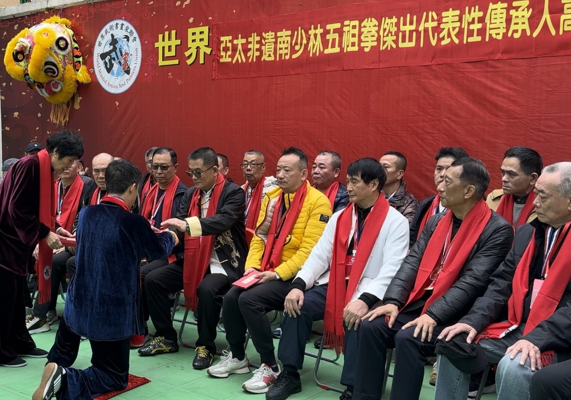 香港新聞網3月4日電 香港“世界武術書畫家聯會”會館 3月3日一派熱鬧騰騰,適逢正月,各方來賓相互拜年道賀。當天,世界武術書畫家聯會創會主席高國雄正舉行收徒儀式,將中華傳統武術技藝開枝散葉。世界武術書畫家聯會創會盧文快、中國功夫書法家馮礎堅、香港中國武術國際學院院長黃宇帆、世界武術書畫家聯會邱火爐師傅、蔡宗煥師傅、太極拳名師關永生師傅及施少雄、林家明、吳振康、許宏周、施能雄、蘇少藝、張金坦、林永嘉、黃金彬、高明亮、蔡第意等眾多武術界代表出席見證收徒儀式。期間,多名香港武術家、書法家現場一展武藝,揮毫助興表演。 世界武術書畫家聯會創會盧文快表示,世界武術書畫家聯會成立以來承蒙社會賢達、武林群體,書畫名家以及各親朋好友的大力支持,希望再接再厲,弘揚中華傳統文化。傳統拜師學藝儀式,有助於學生傳承武術的一份責任心。世界武術書畫家聯會創會主席高國雄說,中華傳統禮儀文化,講究要學武術先學做人,傳統拜師禮儀就是尊師重道的表現。中華武術源遠流長,博大精深,是中國優秀的傳統文化之一。千百年來,師徒相授一直是武術最主要的傳承形式,尊師重道是傳統之美德。因此,武術界尤其是傳統武術界,特別強調師徒名分,講究尊師禮節,注重拜師禮儀,通常只有通過拜師入門,才能被視為為老師真正的學生,拜過師的學生一般稱為“入室弟子”,沒有拜師的學生則只能稱為“記名弟子”。拜師講求一個緣份,老師在正式收徒前,一般要對學生經過嚴格的選拔和較長時間的考察,以決定是否擇其為徒。 據瞭解,世界武術書畫家聯會是一個非政治、非宗教、非牟利民間互助團體,以愛國愛港、弘揚中華武術及書畫文化為己任,以香港為中心與世界各地交流,定期舉辦培訓班、武術交流、書畫展覽等。把傳統文化的發展提升到新的高度,提升社會對中華優秀傳統文化的認同感,發揮更多更大的積極作用。