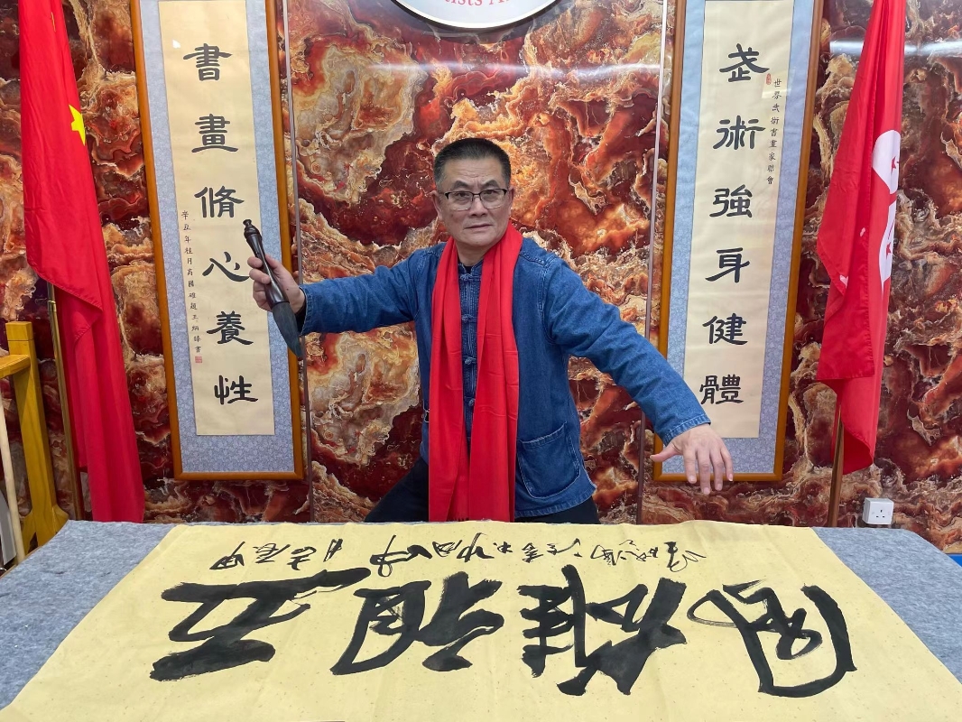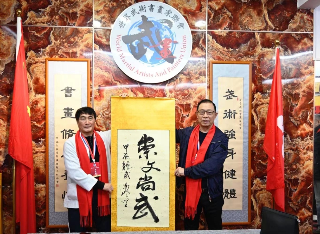 世界武術書畫家聯會創會盧文快(右)、中國功夫書法家馮礎堅