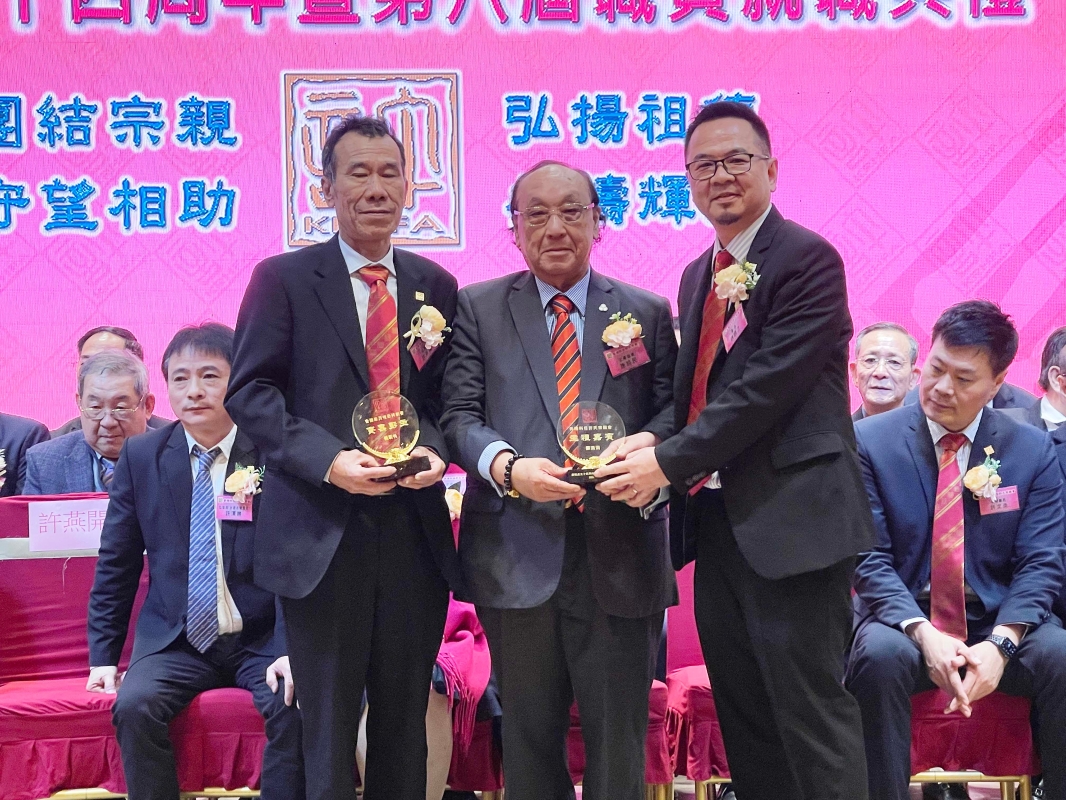 香港福建社團聯會副主席施純民(中)香港科任許氏宗親會會長許明汀(右)