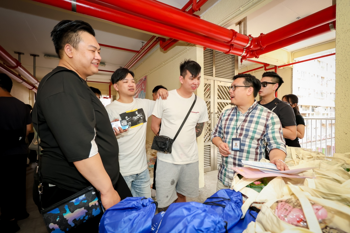 當日探訪深水埗情況,深水埗區區議員梁秉堅協助上門探訪
