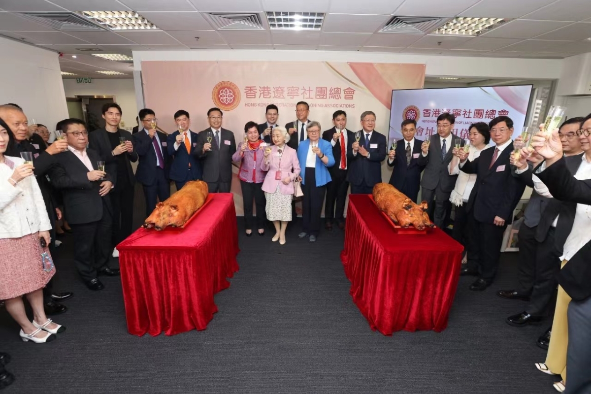嘉賓在香港遼寧社團總會啟用儀式上祝酒。