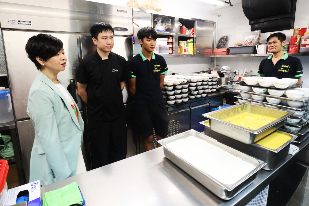 房屋局局長何永賢(左)參觀“荃福居”的飯堂。