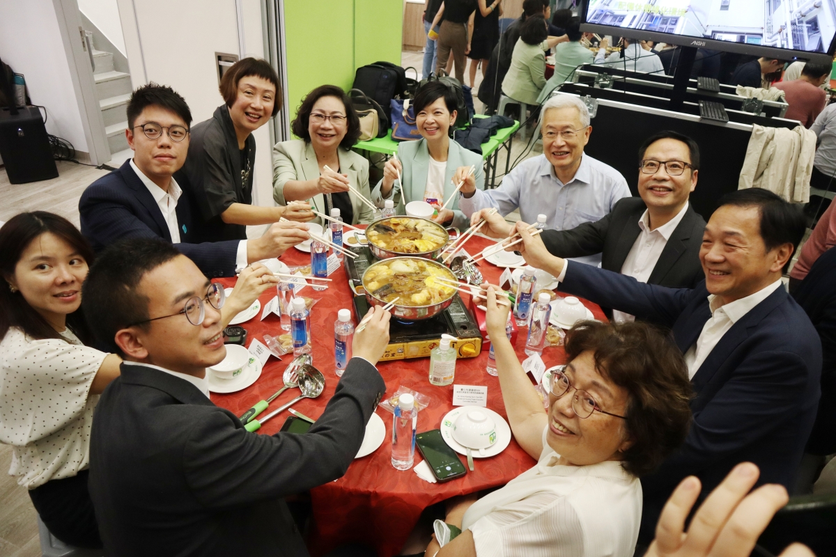 嘉賓們與“荃福居”居民一起享用盆菜。 【編輯:曹文毓】