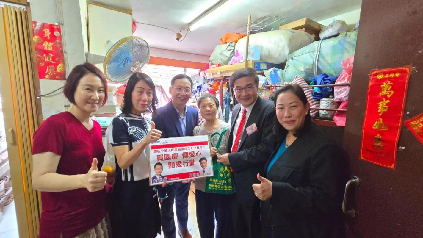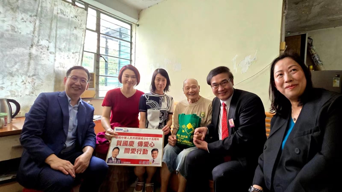 “賀國賀 傳愛心”探訪長者。 林順潮議員表示,他與觀塘有很深的感情,小時候居於觀塘徒置區。老有所養、老有所依、老有所樂、老有所安,是全社會的共同願望,也是國家主席習近平一直以來的深切牽掛。他希望未來公營醫療的輪候時間可以更快,讓長者更安心。 全國人大常委李慧瓊亦表示:落實積極應對人口老齡化是國家戰略,讓老年人共享改革發展成果安享幸福晚年,是“家事”,也是“國事”。這次借國慶期間,為長者送暖,一起分享國慶的喜悅是件十分有意義的事情。 觀塘區議員柯創盛說,觀塘是一個人口相對老年化的社區,他會繼續為社區爭取更多便利長者的設施,協助政府完善基層治理,為民生出力。 活動儀式後,議員們上門探探訪了97歲的獨居長者王伯伯,和一位77歲的盧婆婆,與其促膝談心,關心其生活起居問題,也送上節日的禮物予以長者。探訪過程中,見到長者們熱情的接待和熱烈的笑容,議員們深深感動,也感受到深入社區基層的重要性。敬老愛老之必要性。 他們表示以後有時間,還要繼續多走入社區,與民同心,關心民眾,履行好議員的職責,用實際行動落實好習主席的倡導,落實好國家積極應對人口老齡化的政策。 (完) 【編輯:錢林霞】