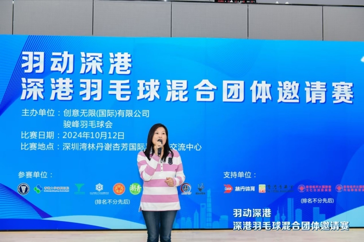香港特別行政區政府駐深圳聯絡處主任黎瑞琼女士致詞 香港特別行政區政府駐深圳聯絡處主任黎瑞琼女士致詞,強調兩地在體育文化的深厚聯繫,希望未來兩地的交流合作更緊密。深圳市委統戰部港澳處二級調研員郭永輝先生出席並祝賀活動完滿成功。