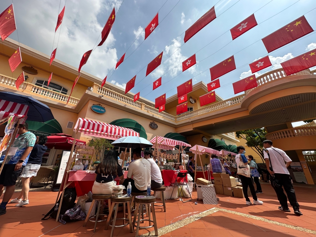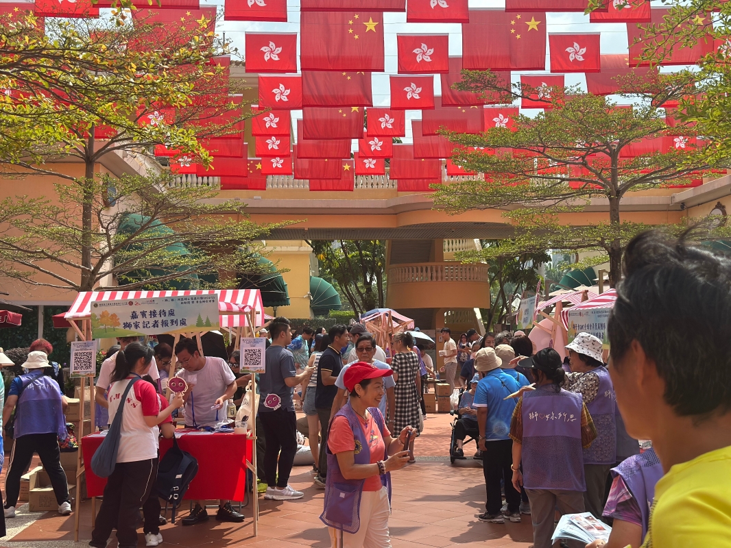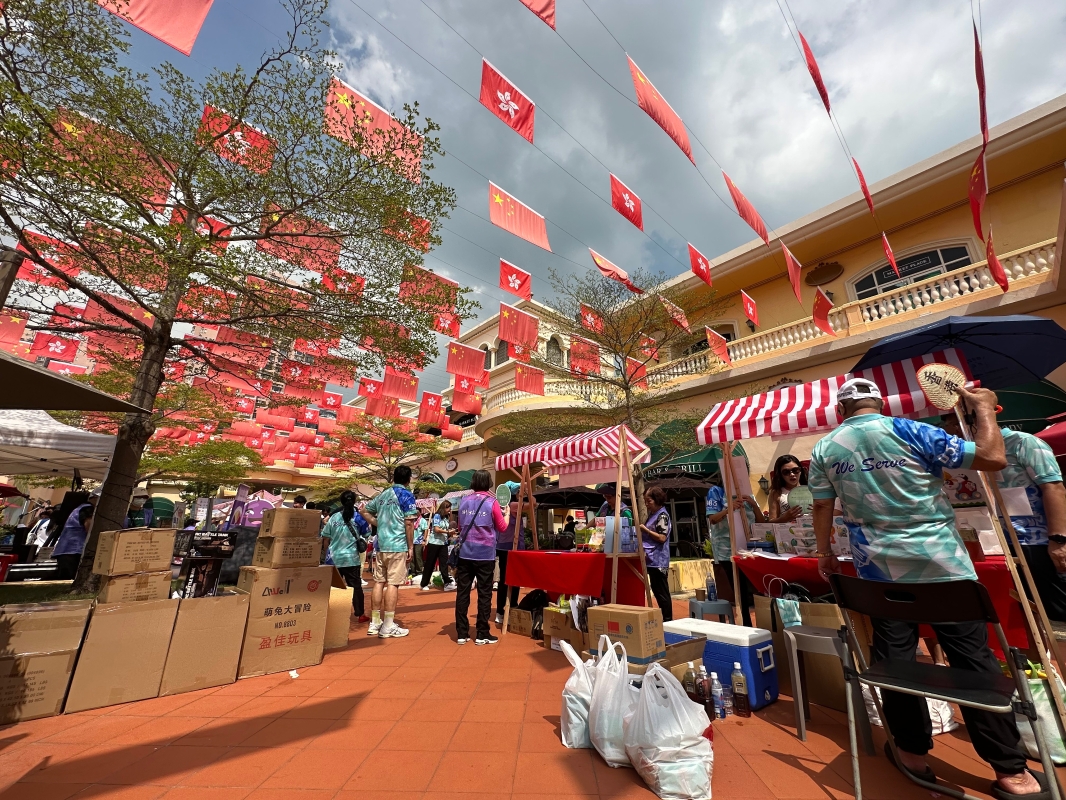 香港新聞網10月19日電 “獅、妳”所思‧婦⼥發展計劃2024-2025啟動禮暨⿈⾦獅家市集10月19日在屯門黃金海岸隆重舉辦。現場一片紅色國旗區旗,吸引大批市民到場打卡逛市集。