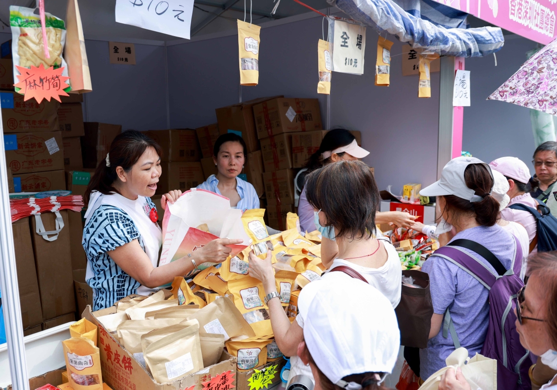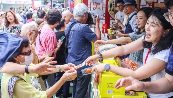 香港新聞網6月3日電(呂真好圖文)6月3日,大批市民陸續來到維園家鄉市集嘉年華選購家鄉特產,品嚐家鄉美食。由香港廣東社團總會、香港福建社團總會等30個省級同鄉社團聯合主辦的家鄉市集嘉年華6月1日至5日舉行,設有近300個攤位,展銷超過110萬件來自各省市區的特產貨品。而“中華美食街”則設30個熟食攤位,匯聚了青島原漿、傳統煎餅、膠東花餑餑、陝西肉夾饃。今年的家鄉市集比往年陣容更大、產品更豐富,新增了遼寧、吉林兩省兩個同鄉社團參與,參展省級同鄉社團聯會達到30個。除了300個特色攤位及多不勝數的特產商品,還會推出近200項文藝表演。來自各省市自治區的藝術家攜家鄉絕技登台,有新疆歌舞、內蒙古草原牧歌、武當太極、川劇變臉、東北秧歌、廣西壯鄉歌圩,更有京劇、越劇、黃梅戲、淮劇等戲曲名家連袂登場。