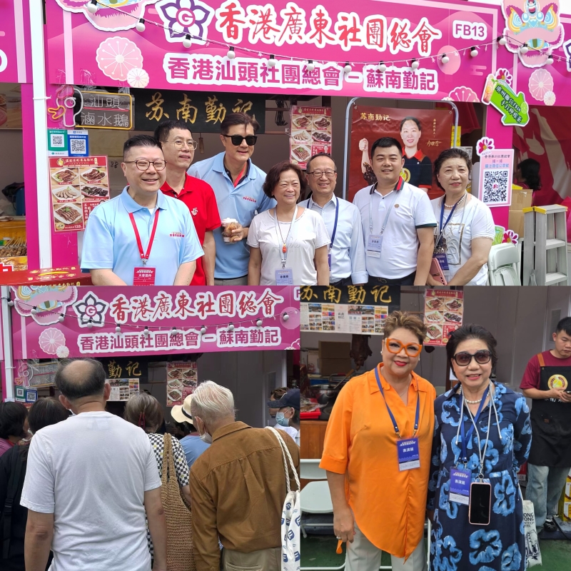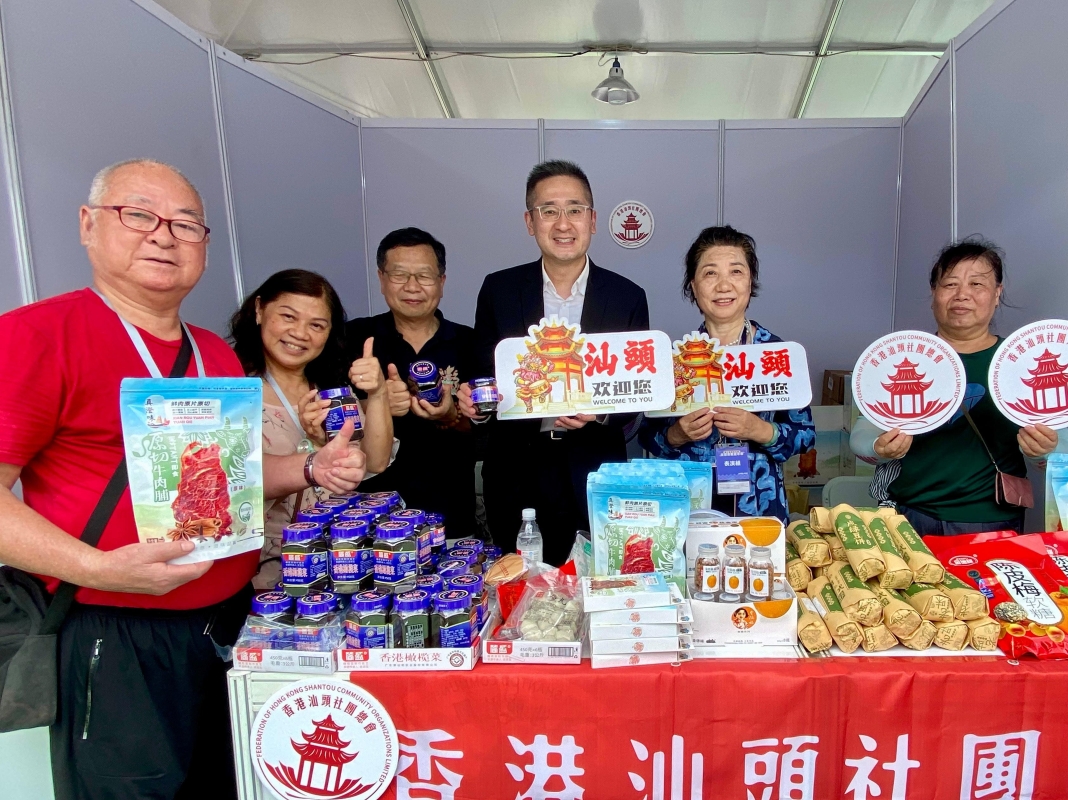 受訪者供圖 香港汕頭社團總會積極參與、全力支持,為全港市民帶來眾多汕頭特產,如汕頭手打牛肉丸、特色小吃綠豆餅、送粥“神器”橄欖菜和廣受年輕人喜歡的牛肉脯、豬肉脯,攤位吸引眾多市民光顧,更有商務及經濟發展局副局長陳百里、香港藝人肥媽及不少立法會議員、區議員等重量級嘉賓前來“助陣”。