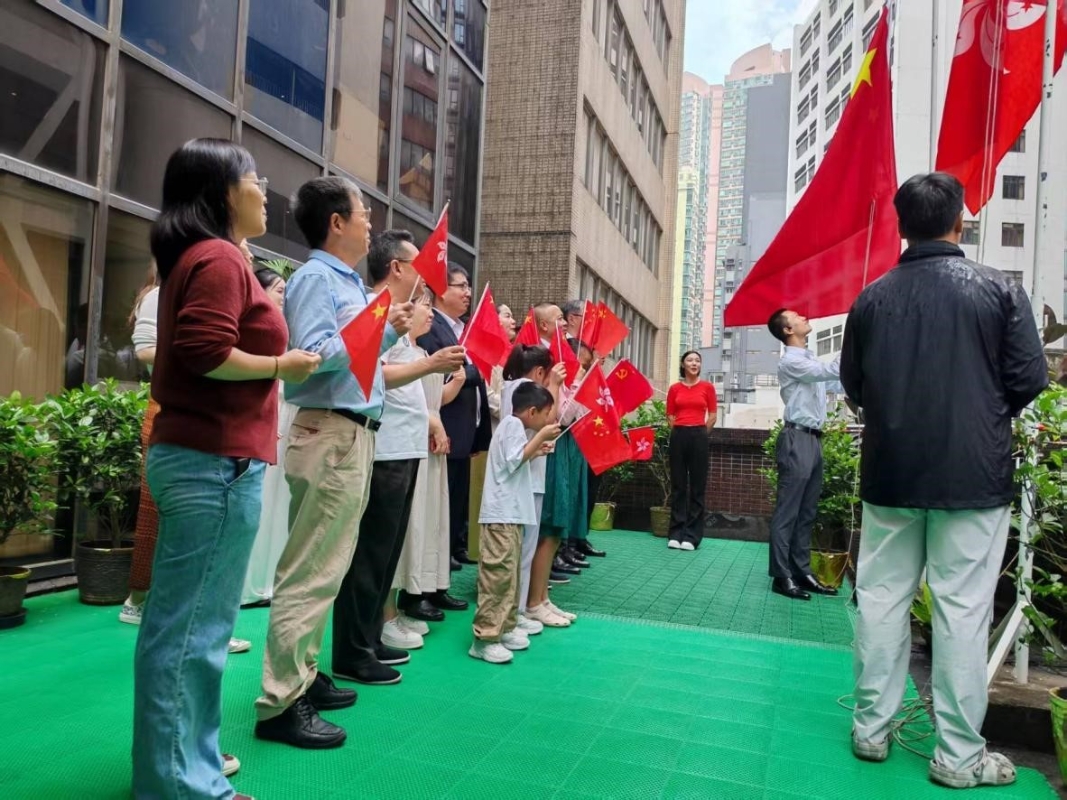 香港新聞網7月1日電 2025年7月1日上午,為慶祝香港回歸祖國28周年,陝西、青海、寧夏、新疆、內蒙古等省級駐港企業及社團代表齊聚華秦國際大廈,舉行莊嚴肅穆的昇旗儀式,共抒愛國情懷,凝聚愛國愛港力量。