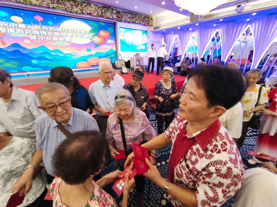 香港新聞網9月14日電 (記者洪少葵)9月14日,香港廣西武僑僑友聯誼會十五週年暨中秋聯歡會在香港沙田石門一家酒樓熱鬧舉行,逾400僑友及嘉賓出席。 廣西武橋僑友聯誼會是一家非牟利機構,成立於2010年,其宗旨是搭建一個平台,讓當地香港的廣西武僑僑友朋友們能夠相聚聯歡,促進彼此交流與聯繫,同時表達對國家的熱愛與支持。過去的十五年在歷任會長張榮賢、曾廣淼、余瑞源的帶領下,健康發展,讓聯誼會充滿歡樂和活力。 當天,現任會長余瑞源、副會長周國興、廖松才、榮譽會長李錦開、曾廣淼,名譽會長謝彬華、謝國昌、鄺福祥、邱鋼忠、黃桃蘭、林樹明等聯誼會成員出席。