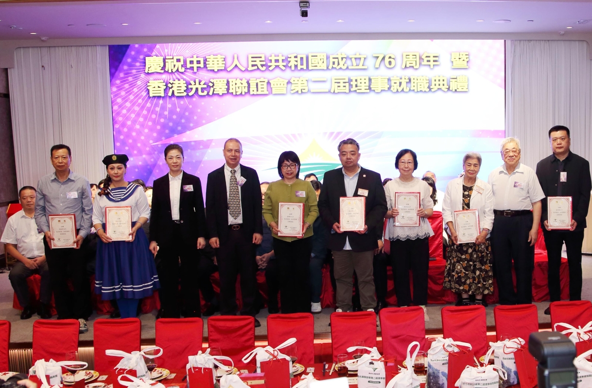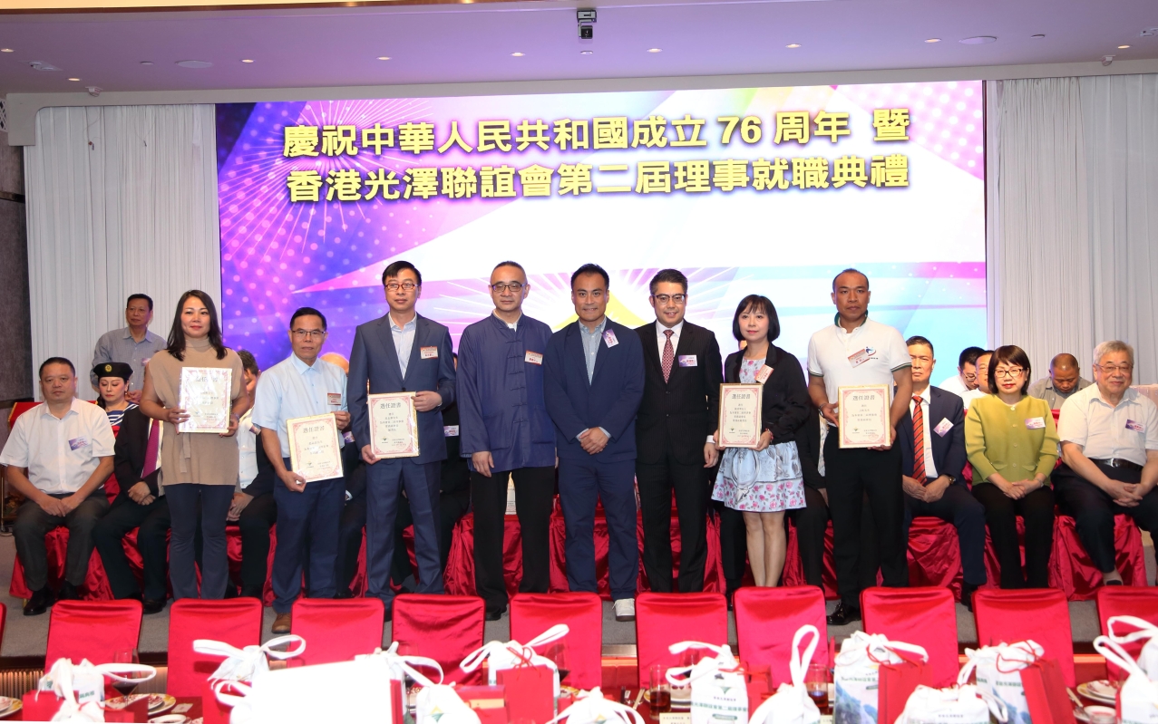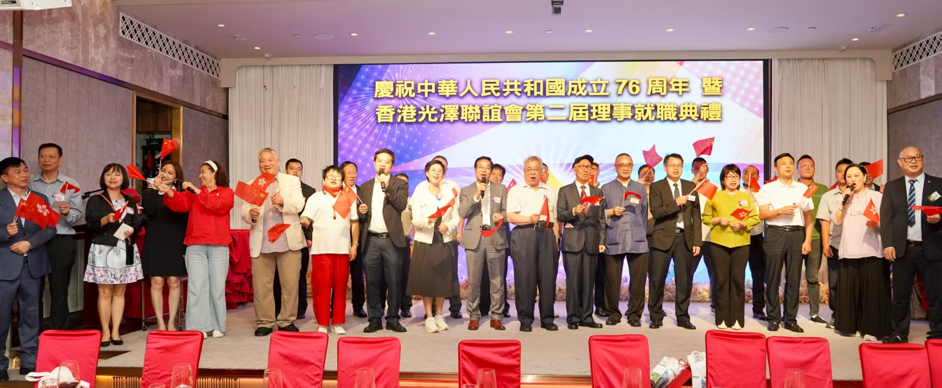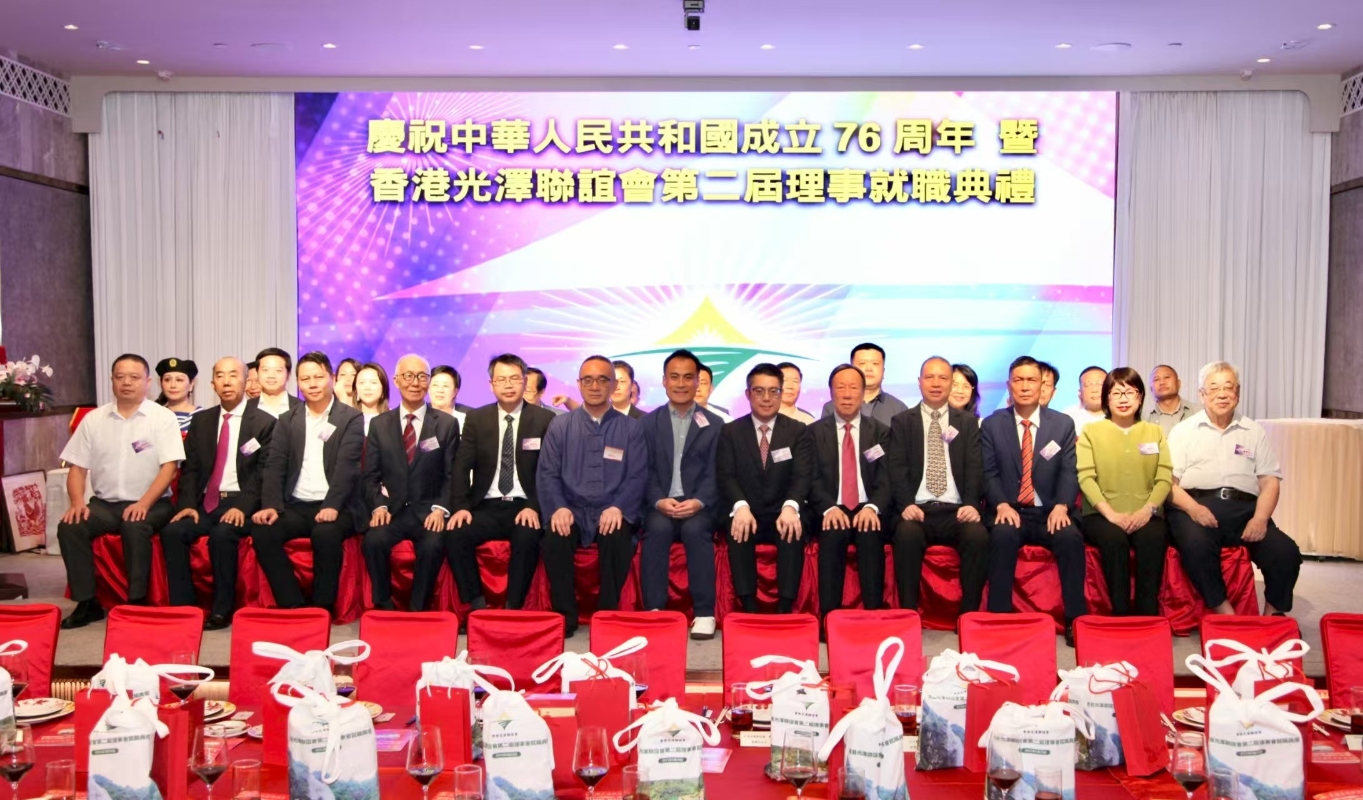香港新聞網9月22日電 香港光澤聯誼會9月20日晚於尖沙咀一酒樓舉行“慶祝中華人民共和國成立76周年暨第二屆理事就職典禮”。來自香港、福建南平及光澤縣的各界嘉賓、鄉親賢達共同見證這一重要時刻。