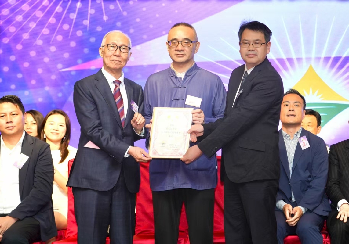 南平市委統戰部副部長鐘家魁(右)、香港南平聯誼總會主席王大治(左)為香港光澤聯誼會會長嚴義松頒發委任聘書